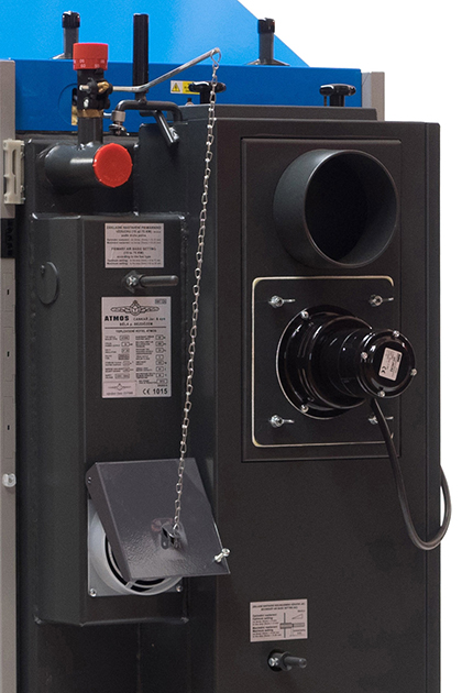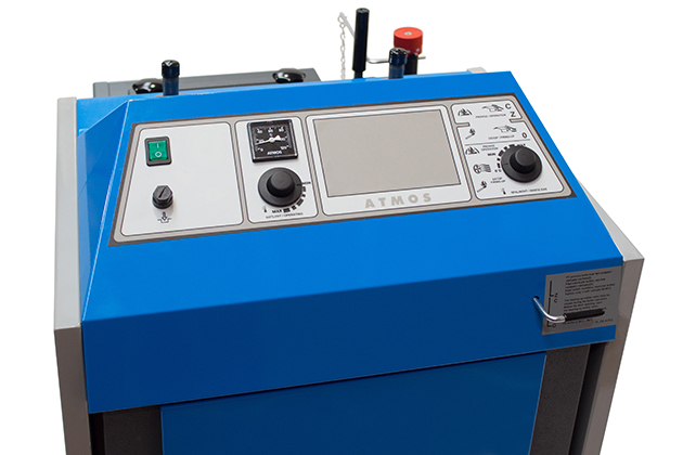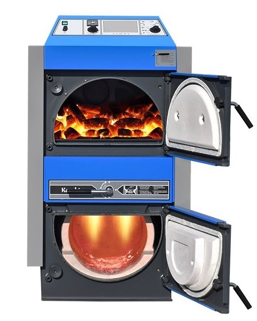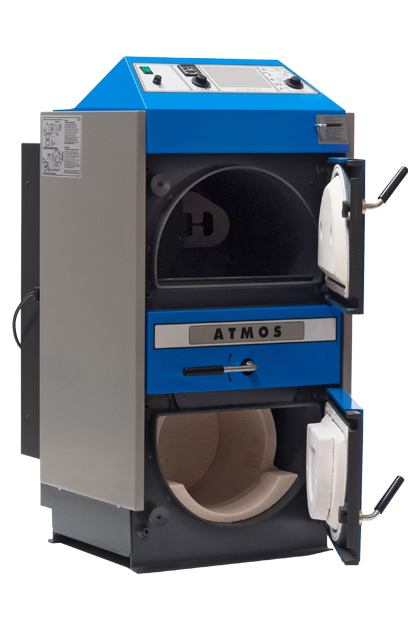 Kotle ATMOS AC jsou určeny pro spalování hnědouhelných briket a černého uhlí na principu generátorového zplynování. Spaliny jsou z kotle odsávány pomocí odtahového ventilátoru (S).