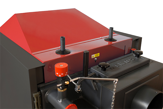 - Odtahový ventilátor pro bezprašné vybírání popela a čistou kotelnu.