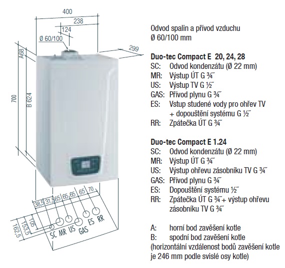 Duo-tec Compact E 20, E 24, E 28 kombinované modely (vytápění + ohřev TUV).