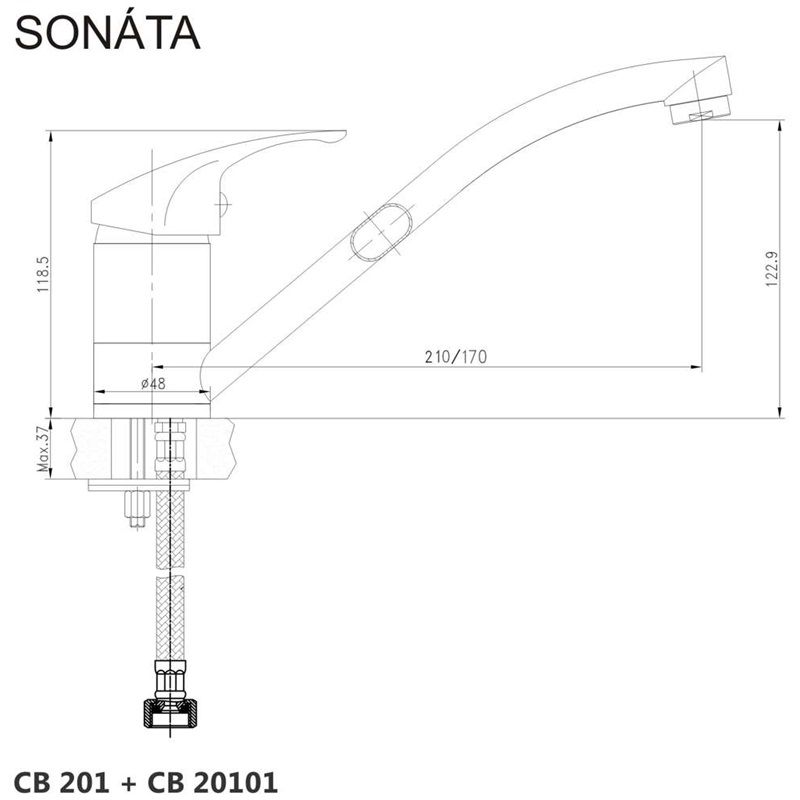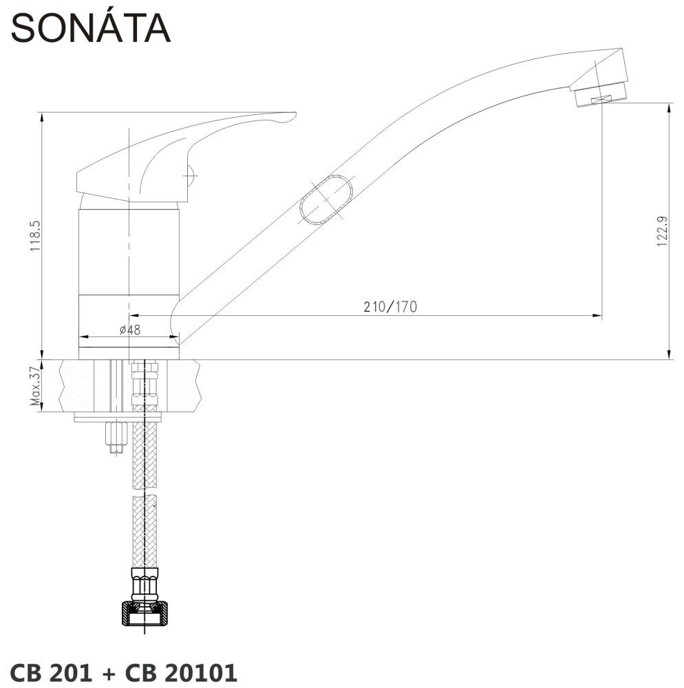 Mereo Dřezová stojánková baterie, Sonáta, s ramínkem plochým 170 mm, chrom