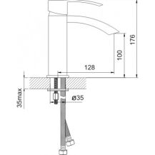 Tato baterie je určena zvláště pro umyvadla z litého mramoru ,ale i keramická umyvadla sotvorem a umyvadla stacionární , kde se ostré hrany baterie a zařizovacích předmětů ujednotí.