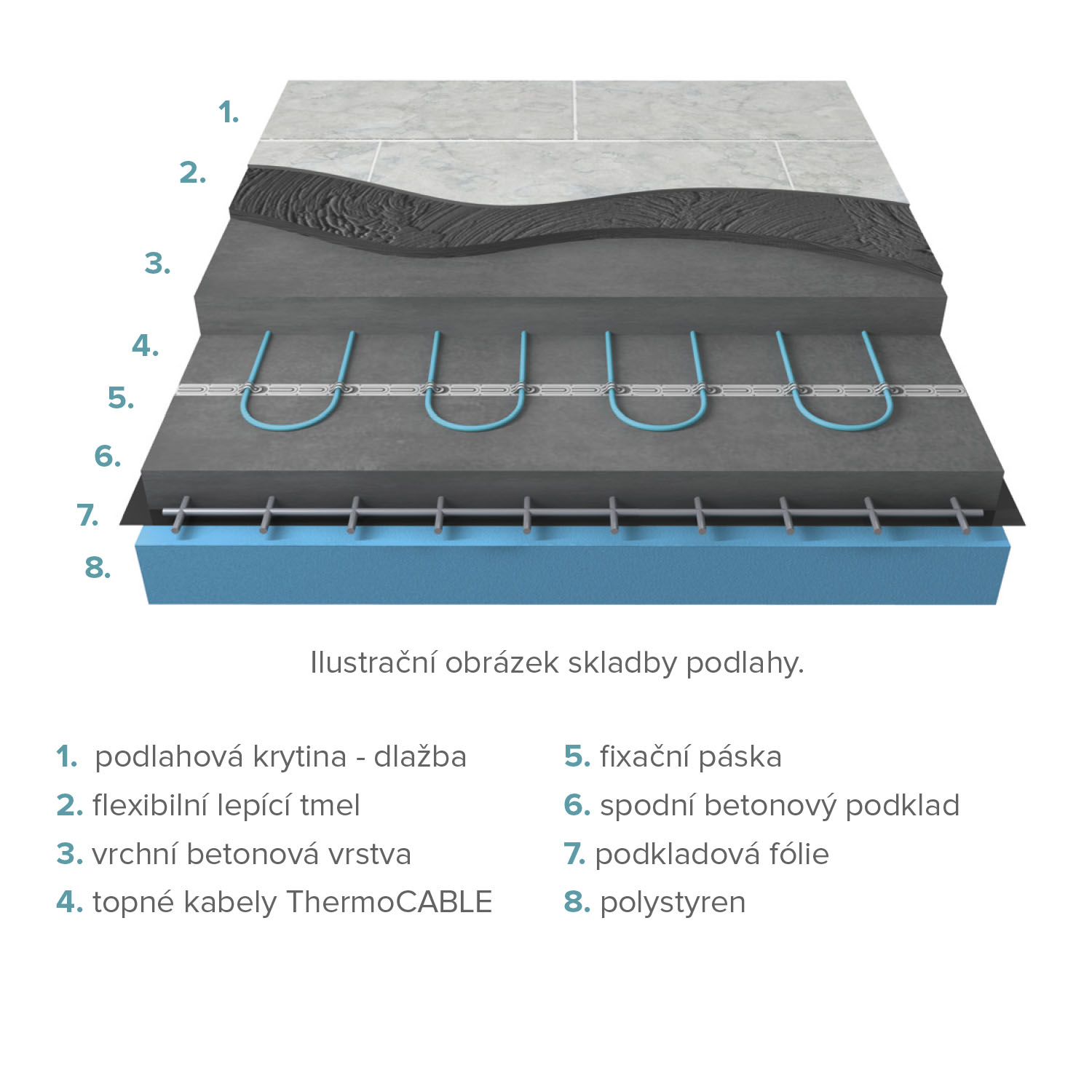 Elektrické podlahové topné kabely HAKL TC 10 ThermoCABLE jsou ekonomickou a pohodlnou alternativou běžného vytápění. Konstrukčně jsou určeny pro pokládku přímo do betonových směsí. Topné kabely zajišťují ideální rozložení teploty v místnosti a minimální cirkulací vzduchu snižují prašnost. Samotné topné jádro je chráněno ochranným opletením, což zvyšuje jeho odolnost a umožňuje instalaci i ve vlhkých prostorách (koupelna, WC ...). Topné kabely HAKL TC 10 ThermoCABLE díky výstupní kontrole kvality „EXTRA quality control“ a bezúdržbovému provozu splňují i ty nejnáročnější požadavky na kvalitu provozu.