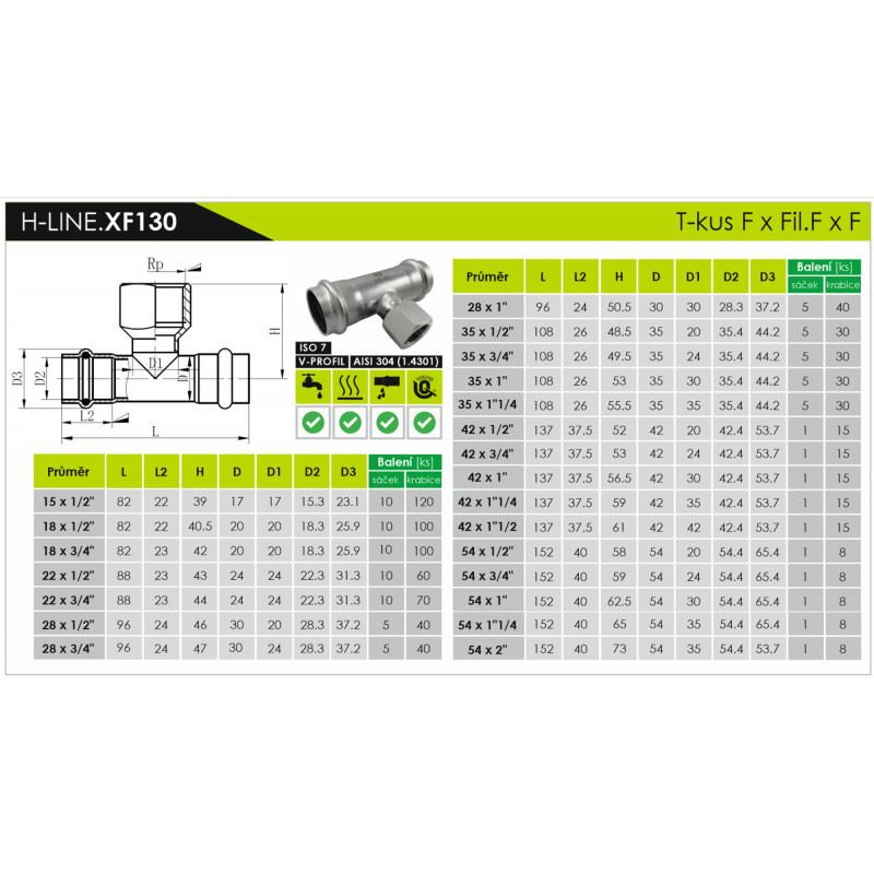 INOXPRESS 304 T-kus vnitřní (XF130)