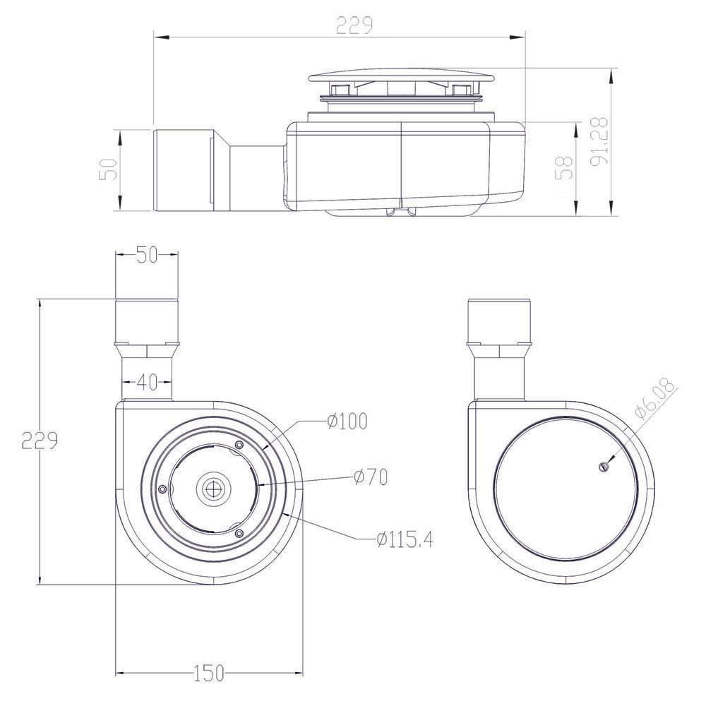 Klum PR6040SN sifon pro sprchovou vaničku, pr. 90 mm, stav. výška 65 mm
