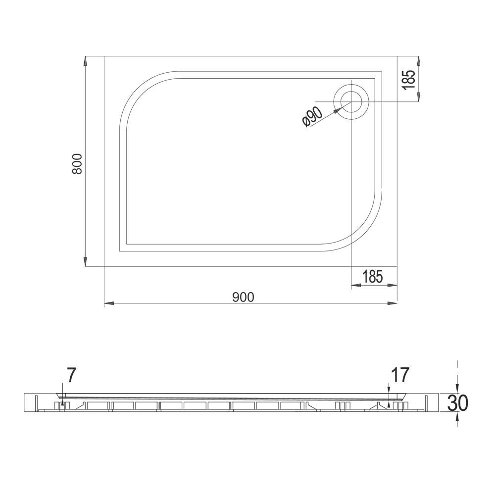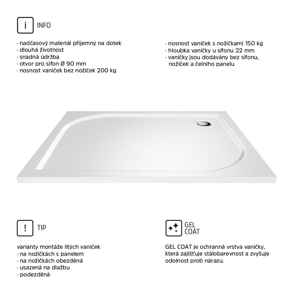 Mereo CV74M obdélníková sprchová vanička, 90x80x3 cm, bez nožiček, litý mramor