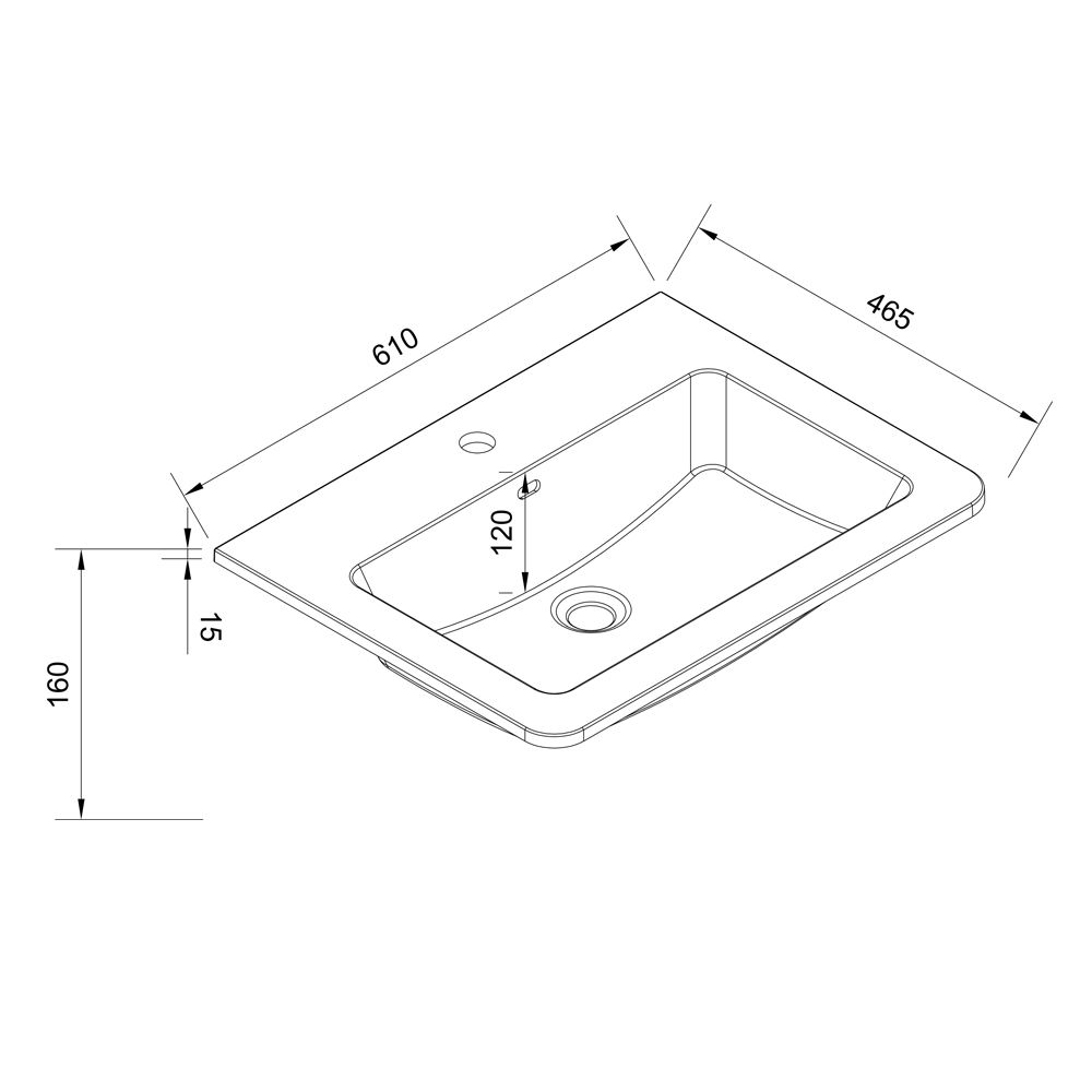 Nábytkové umyvadlo, 610 x 465 x 160 mm, litý mramor s větší odolností vůči oděru a chemikáliím