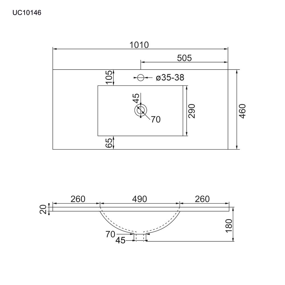 SLIM design nábytkové umyvadlo, 1010 x 460 x 180 mm, keramické s hranou 20 mm