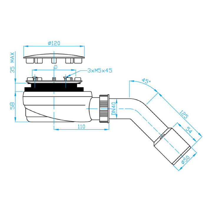 Plast Brno EWNN942 sifon vaničkový nerez 90 nízký