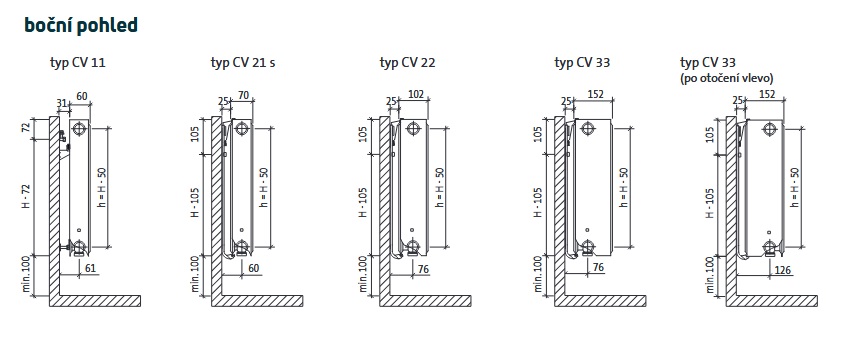 - výšky radiátorů: 300, 450, 550, 600, 900, 950 mm