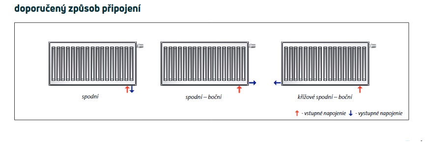 - připojení: Spodní 2x G1/2“ (levé připojení u typu 11 a 33 na objednávku) boční 4x G1/2“