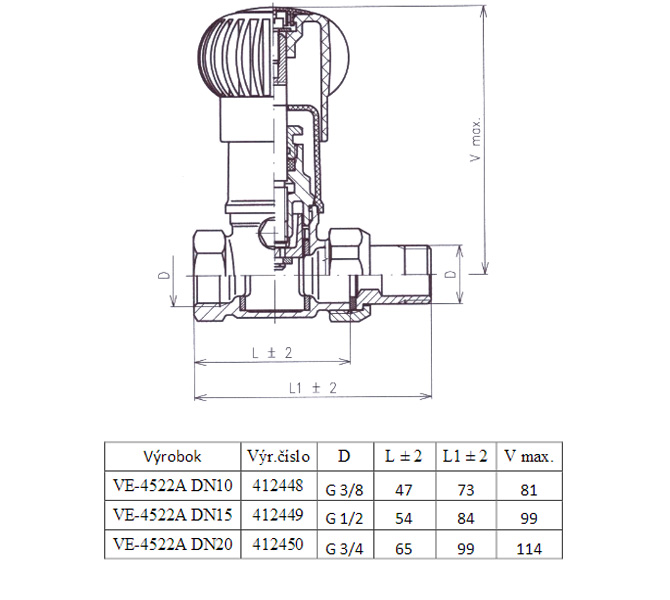 SLOVARM VE-4522 radiátorový kohout přímý 3/8" (412448)