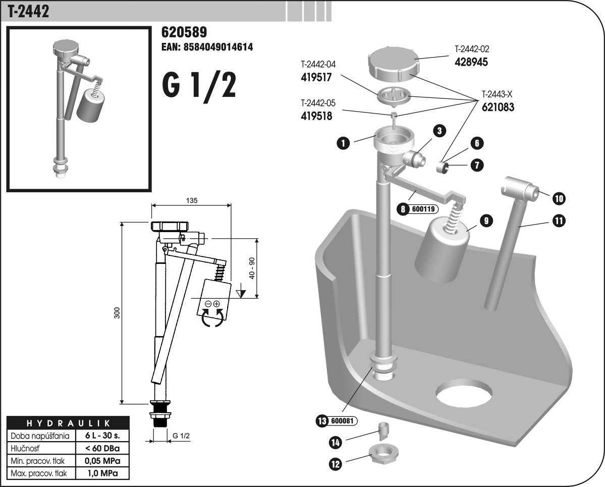 Slovarm T-2442 plovákový ventil spodní (620589)