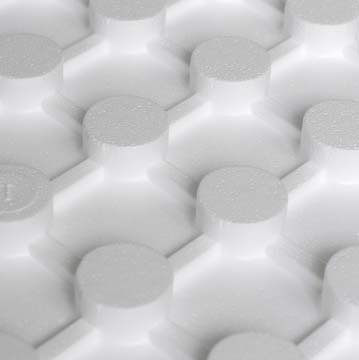 Tepelně izolační deska z expandovaného pěnového polystyrenu určená jako podklad pro systémy teplovodního podlahového vytápění.