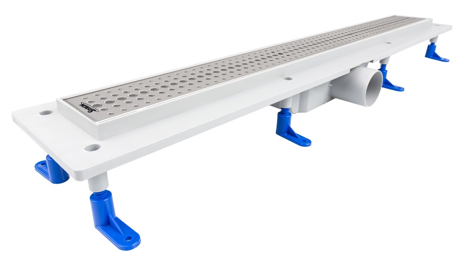 Kvalitně a moderně zpracovaný odtokový žlab v kombinaci pevného plastu s nerezovým roštemo tloušťce 1,5mm. Dvojitá zápachová uzávěra, vodní sloupec a kulička, v případě odpaření vody (podlahové topení,nepoužívané byty atd.) kulička zaklapne otvor a zabraňuje vzlínání pachu.