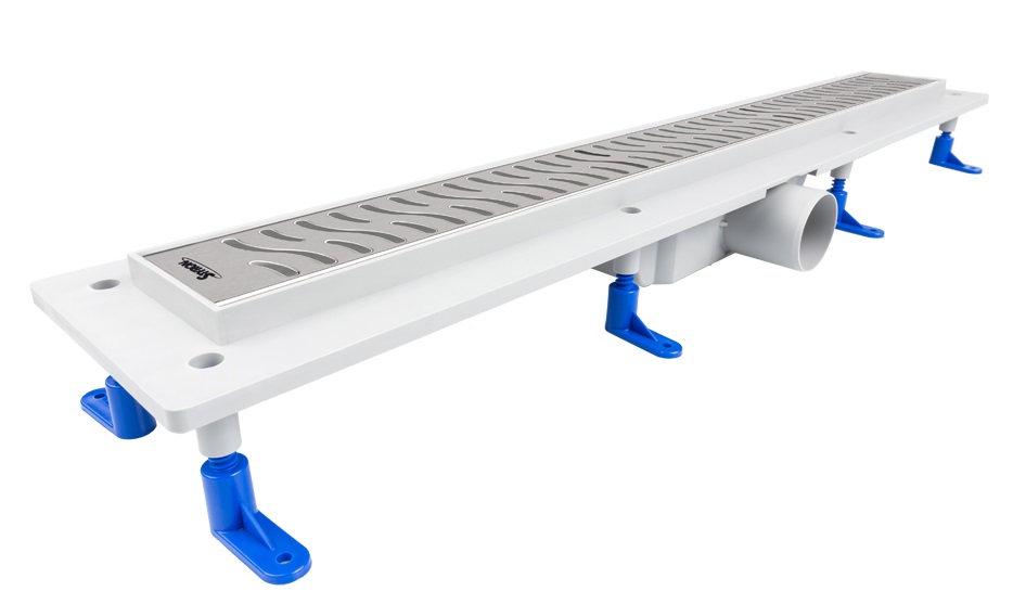 Kvalitně a moderně zpracovaný odtokový žlab v kombinaci pevného plastu s nerezovým roštemo tloušťce 1,5mm. Dvojitá zápachová uzávěra, vodní sloupec a kulička, v případě odpaření vody (podlahové topení,nepoužívané byty atd.) kulička zaklapne otvor a zabraňuje vzlínání pachu.