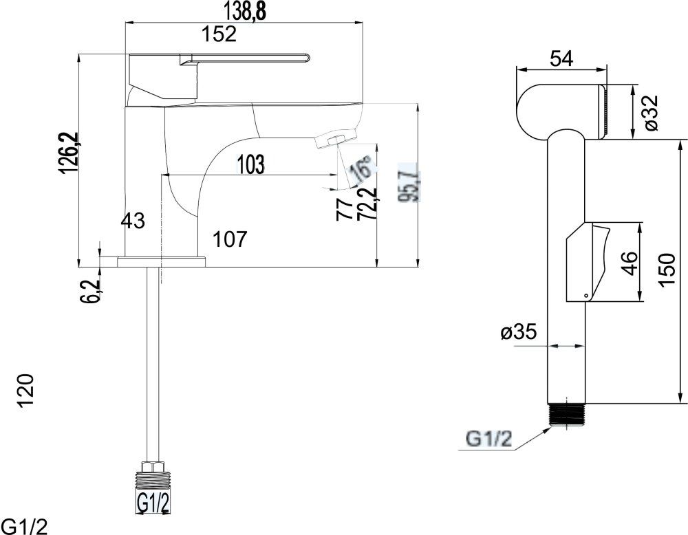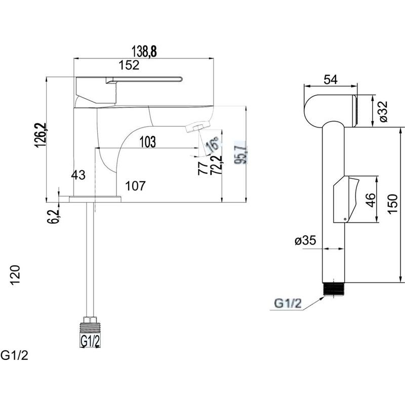 V sadě se stojánkovou baterií je předpokládané umístění na běžné umyvadlo. Bidetová sprcha není určena k tomu, aby byla pod stálým tlakem, a je proto napojena na speciální baterii. Po otevření páky teče voda standardním způsobem a umožňuje nastavit teplotu vody. Po zmáčknutí tlačítka na rukojeti sprchy se proudu vody přesměruje jen do sprchy.