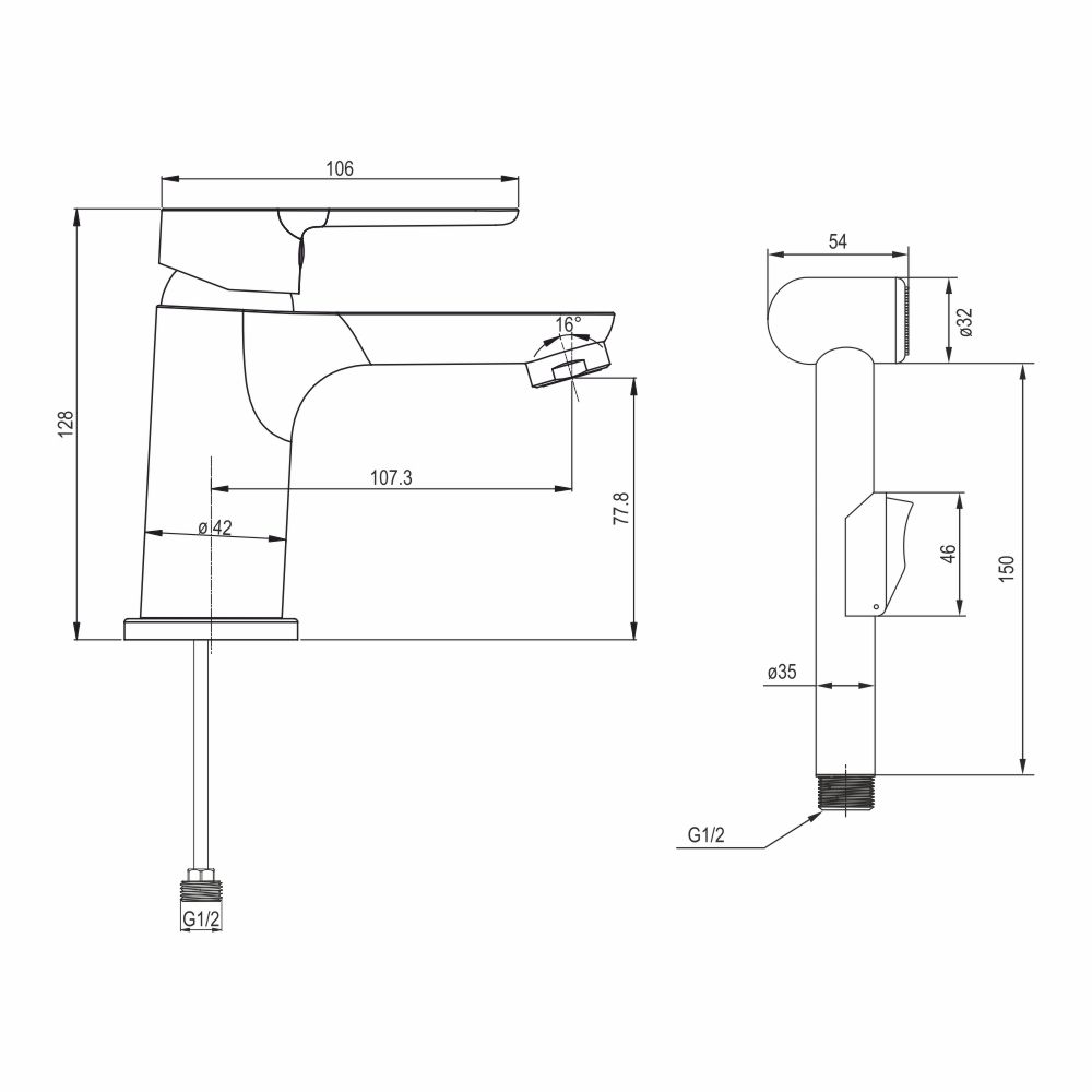 V sadě se stojánkovou baterií je předpokládané umístění na běžné umyvadlo. Bidetová sprcha není určena k tomu, aby byla pod stálým tlakem, a je proto napojena na speciální baterii. Po otevření páky teče voda standardním způsobem a umožňuje nastavit teplotu vody. Po zmáčknutí tlačítka na rukojeti sprchy se produ vody přesměruje jen do sprchy.
