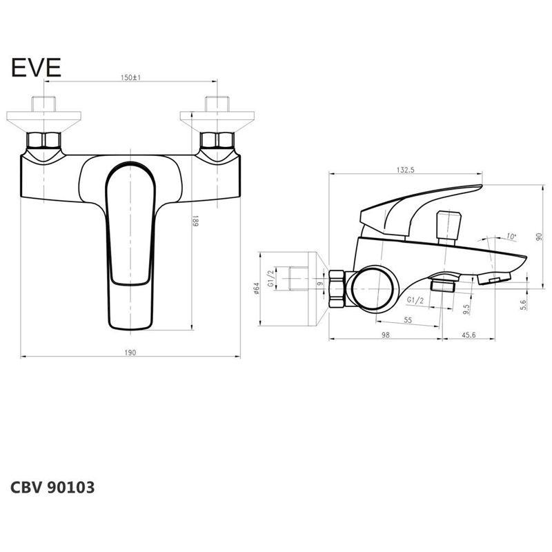 Vanová nástěnná baterie, Eve, bez příslušenství, 150 mm, chrom