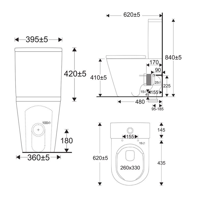 WC kombi, vario odpad, kapotované, Smart Flush RIMLESS, 380x840x620mm, keramické, vč. nádržky a sedátka CSS115SN, spláchnutí 4/6 L.