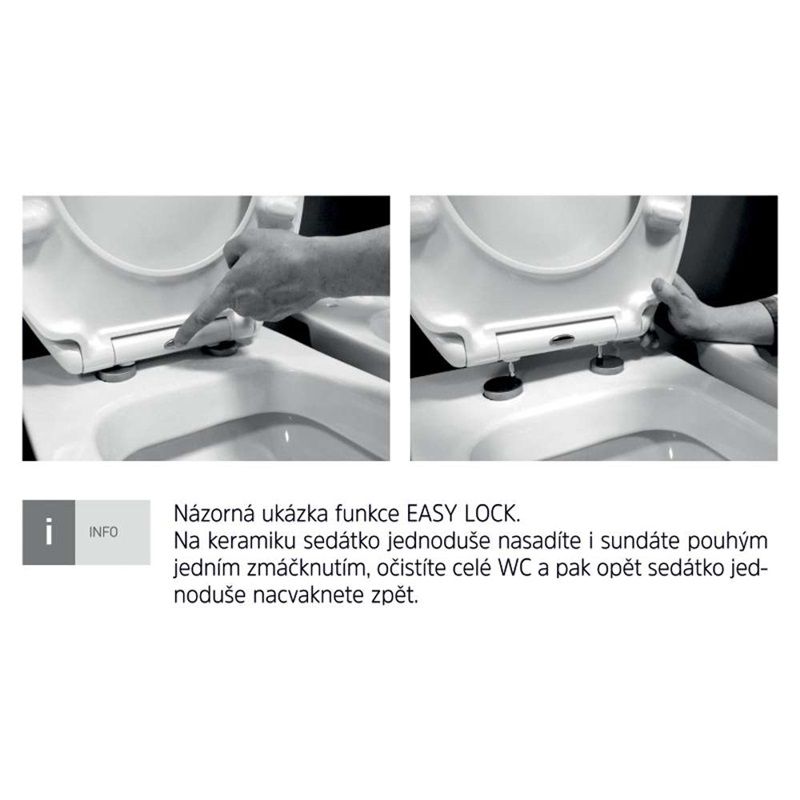 - easy lock: systém umožňující jednoduchým stlačením odejmout WC sedátko od mísy (zvyšuje úroveň hygieny toalety)