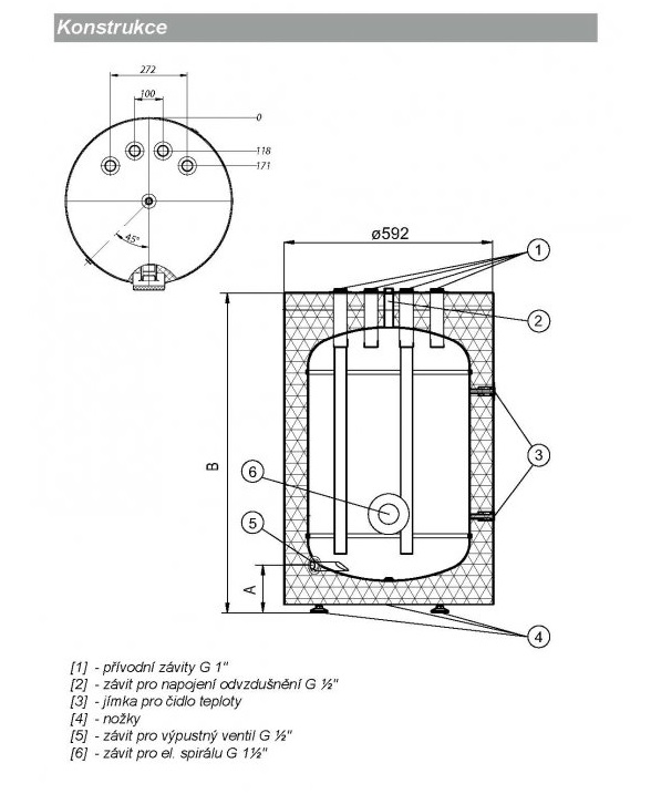 - nádrž je vybaveny tvrdou izolací z PUR pěny 65mm